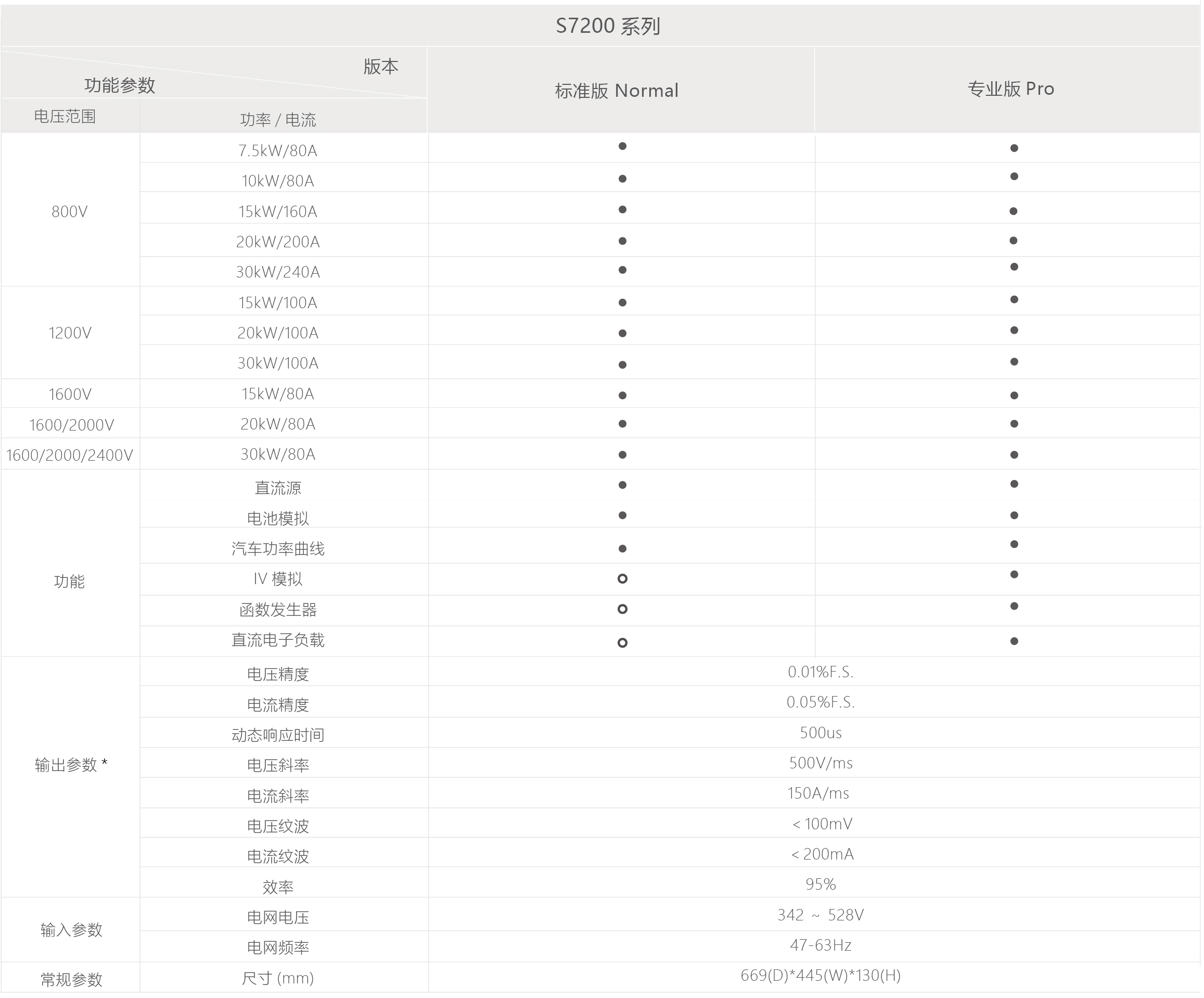 S7200系列新一代可编程直流源载系统采用超高压设计,单机电压可输出2400V,满足客户高压过压测试需求。