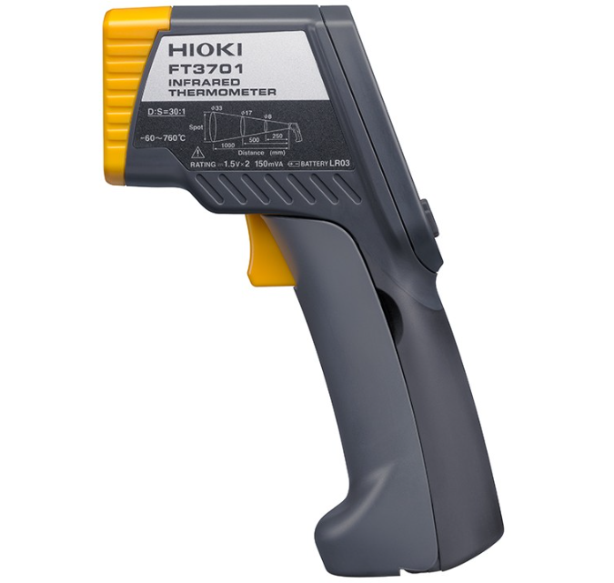 手枪式,轻松且快速测量温度; 3m距离下φ100mm -35.0~500.0℃ 测试波长:8~14μm 2点红外定位。