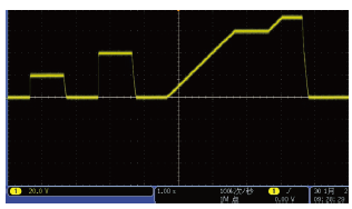 FTP3000系列支持电压缓升缓降功能,可使输出电压从低点缓慢提升至高点,或者使输出电压从高点缓慢跌落至低点。RAMP功能具有连续(Continuous)、脉冲(Pulse)和翻转(Toggle)三种工作模式。