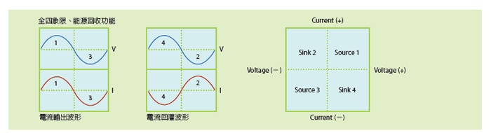 Chroma 61830回收式电网模拟电源是一款定电压输出的可编程交流电源,可应用于一般用电产品(例如: 家电产品,开关式电源)的测试,测试时Chroma 61845回收式电网模拟电源会对负载输出功率,通过拉载过电流设定(OCP)功能来保护Chroma 61830。当待测物为能将能量回馈到电网的产品(例如:太阳能逆变器,双向充放电机)等分散式发电设备时,Chroma 61830在输出电压的同时,若侦测到输出得功率为”负(-)”功率时,Chroma 61830就会启动能源回收机制,将逆变器所产生的逆灌电流/负功率能量转换到交流电网。通常的交流电源无法承受待测物回灌的能量。Chroma 61830可应用到正负电压/电流正反方向的四象限,且具备能源回收功能,正足以成为电网模拟电源。