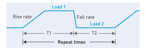 • 动态负载可编程的参数:电流高/低准位、T1/T2、爬升率/下降率与执行次数