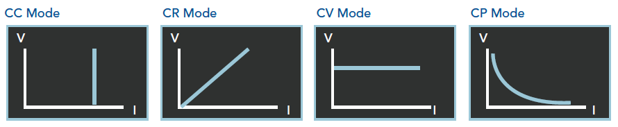 63200E系列有定电压、定电流、定电阻、定功率与定阻抗模式,藉由这些操作模式可以来满足广泛的测试需求。举例来说,定电流与定电阻模式对于电压源的待测物测试,可确认待测物在不同的负载情况下,输出电压是否仍维持稳定输出。对于电池的充电器或充电桩而言,定电压模式可以改变充电器或充电桩的输出电压,以确保充电器或充电桩在所设定的输出电压时充电电流的正确性。当待测物为电池时,电子负载则可转变为仿真电子设备拉载的行为,许多电池的放电应用、功率消耗等情况都可藉由电子负载的仿真拉载行为来进行电池的分析,而定功率模式则是仿真电子设备拉载行为的最佳选择之一。