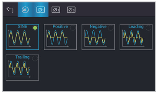 Chroma 63800R系列能源回收式交流电子负载于CC Rectified模式配备半周拉载功能。在电压、电流为正弦波条件下,提供正半周、负半周,以及模拟SCR/TRIAC开关特性的90度Leading Edge、Trailing edge等半周拉载。用户可藉由拉载此特殊电流波型,模拟调温/调光的家用电器、保护开关等,使用SCR/TRIAC元件相关被测物的负载特性,测试电压源的输出稳定度。
