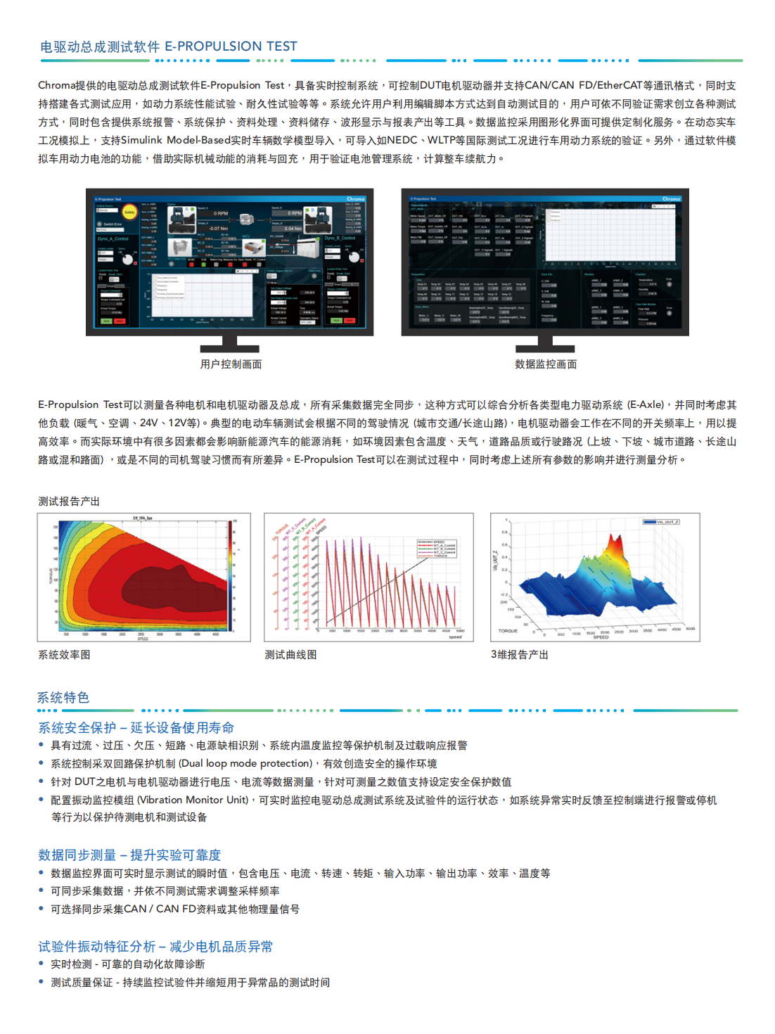 Chroma推出新型电驱动总成测试系统1220,应用在纯电动乘用或商用车等车型,专门针对电机、电机驱动器及变速箱三合一总成系统等进行性能及耐久性验证等。