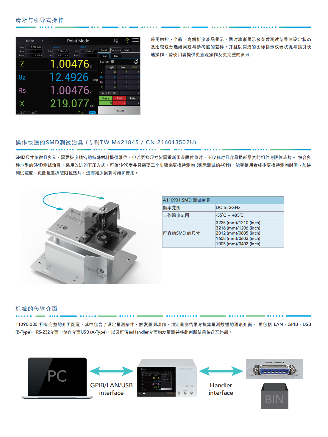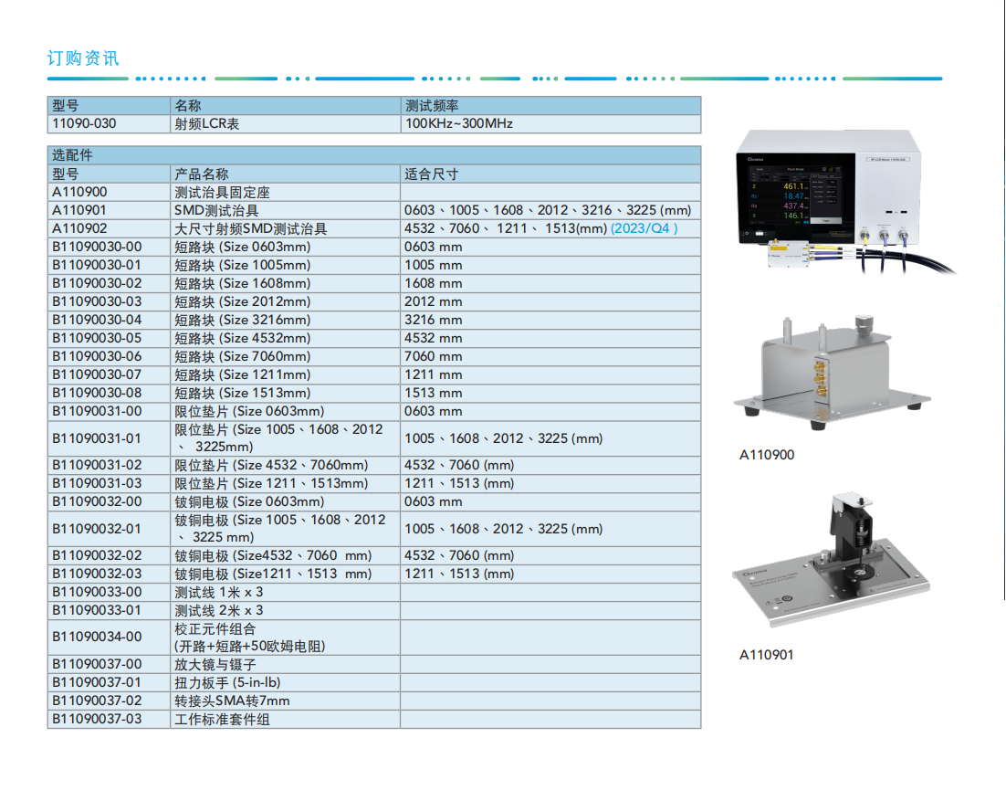 Chroma 11090-030射频LCR表为一提供贴片电感及射频滤波器等被动元件高频量测评估解决方案。
