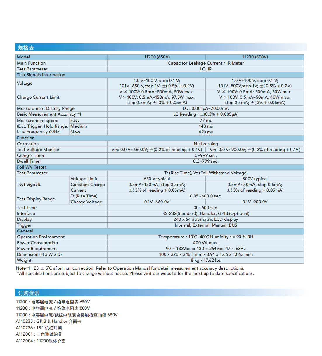 名  称:电容漏电流/绝缘电阻表MODEL 11200