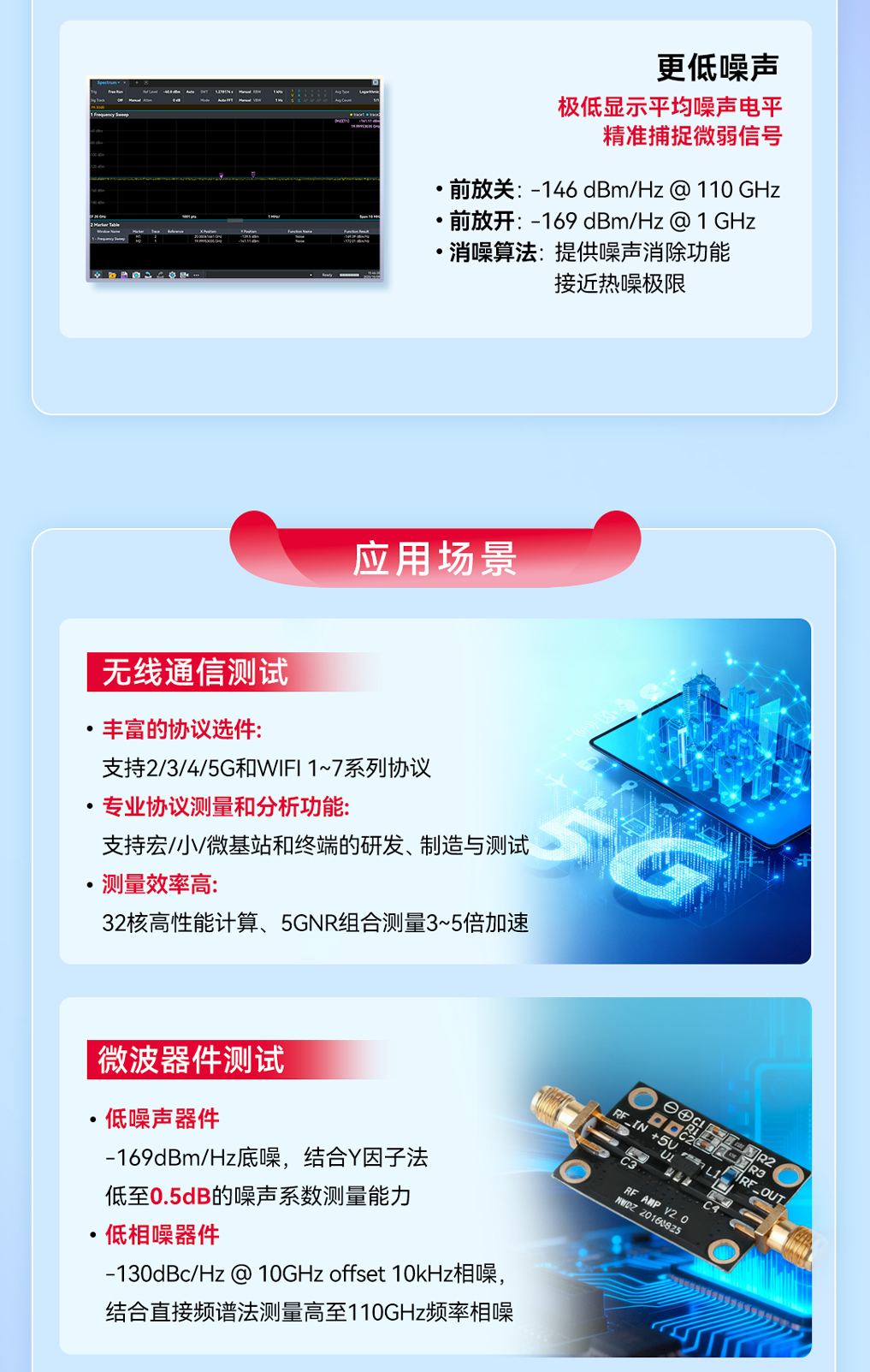 信号与频谱分析仪是电子测量领域的核心仪器,用于“看清”信号的频率构成和功率分布,深入分析其调制特性、失真、噪声等关键参数,是射频微波电路、无线通信系统、电子元器件等研发、测试和制造不可或缺的工具。